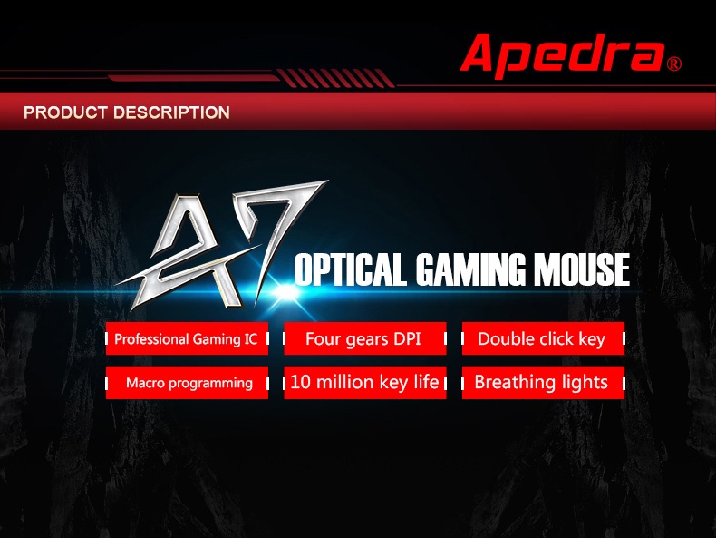 รายละเอียดของสินค้า Professional USB Wired Gaming Mouse 7Buttons 3200DPI Optical Computer Mouse Gamer Cable Mice For Laptop PC Game LOL CSGO Dota A7 - intl