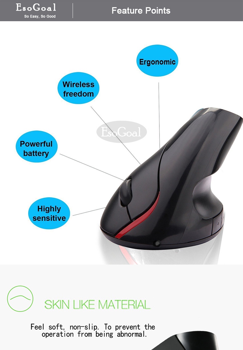 รายละเอียดของสินค้า EsoGoal เมาส์แนวตั้งแก้อาการปวดข้อมือ เม้าส์ไร้สาย Vertical mouse Ergonomic Wireless Mice