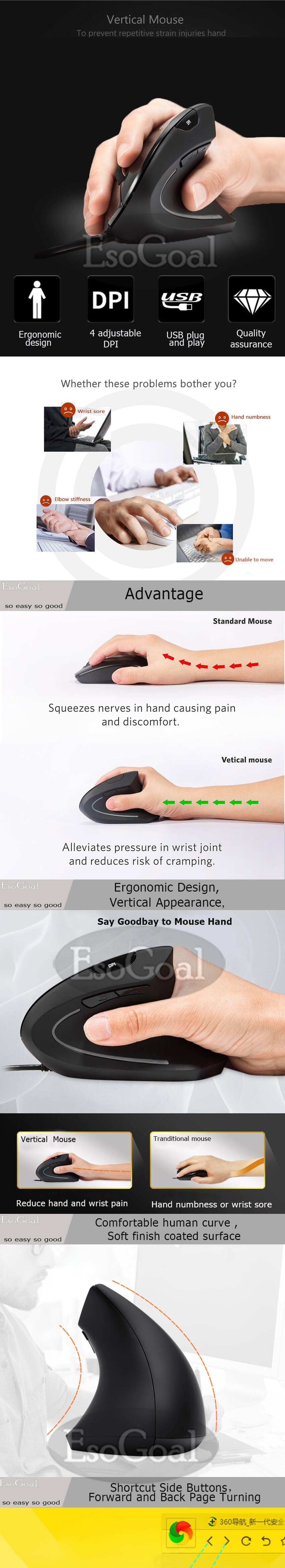 รายละเอียดของสินค้า EsoGoal เมาส์แนวตั้งแก้อาการปวดข้อมือ เม้าส์ไร้สาย Vertical mouse Ergonomic game Wire Mice - intl