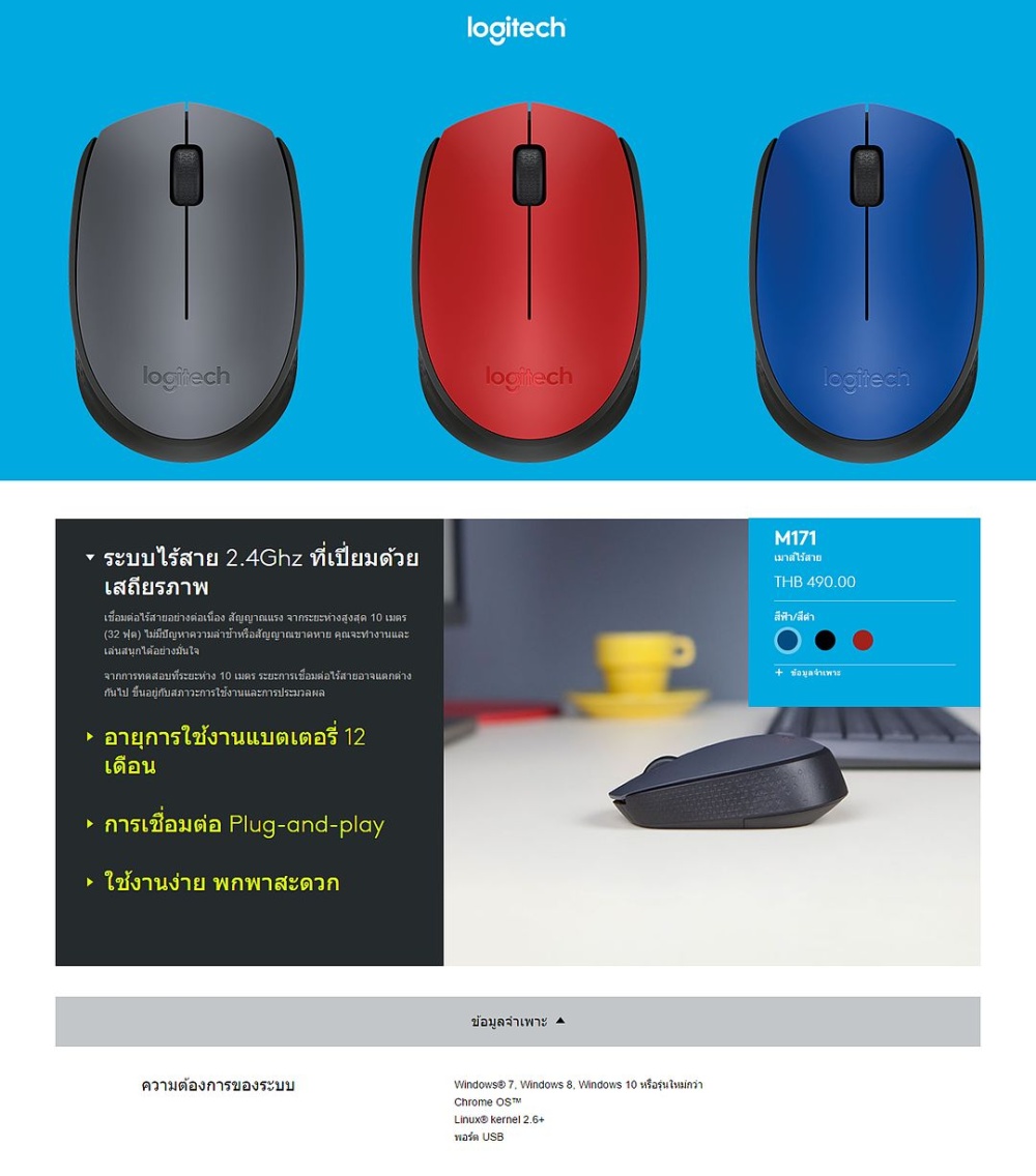 รายละเอียดของสินค้า Logitech USB Wireless Mouse M-171 Gray/Black