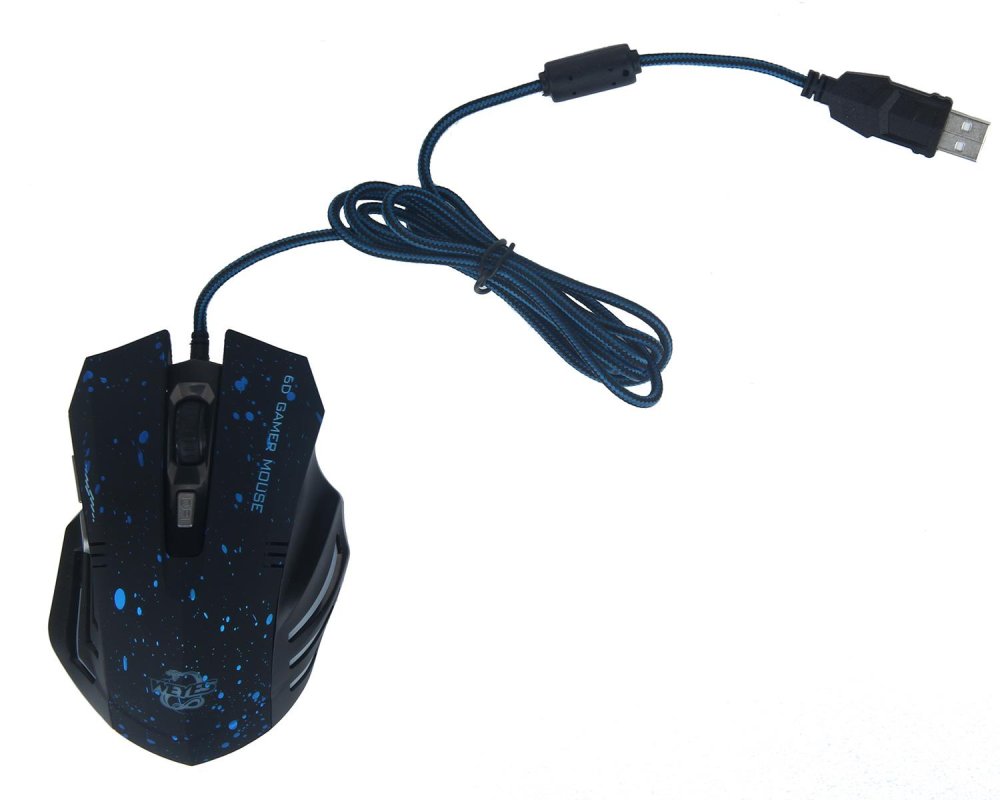 รายละเอียดของสินค้า niceEshop 6 ปุ่ม 2000 dpi led แบบออปติคอลเมาส์สำหรับเล่นเกมส์เกมส์หนู (สีดำ สีน้ำเงินประ) เกมคุณภาพ