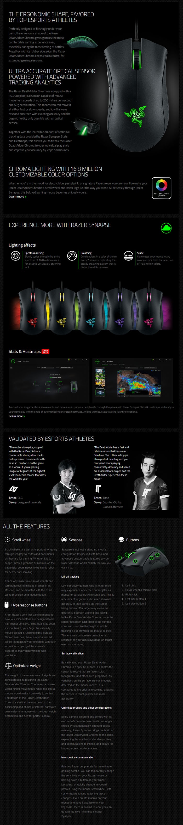 รายละเอียดของสินค้า Razer Deathadder Chroma Gaming Mouse (OEM - New)